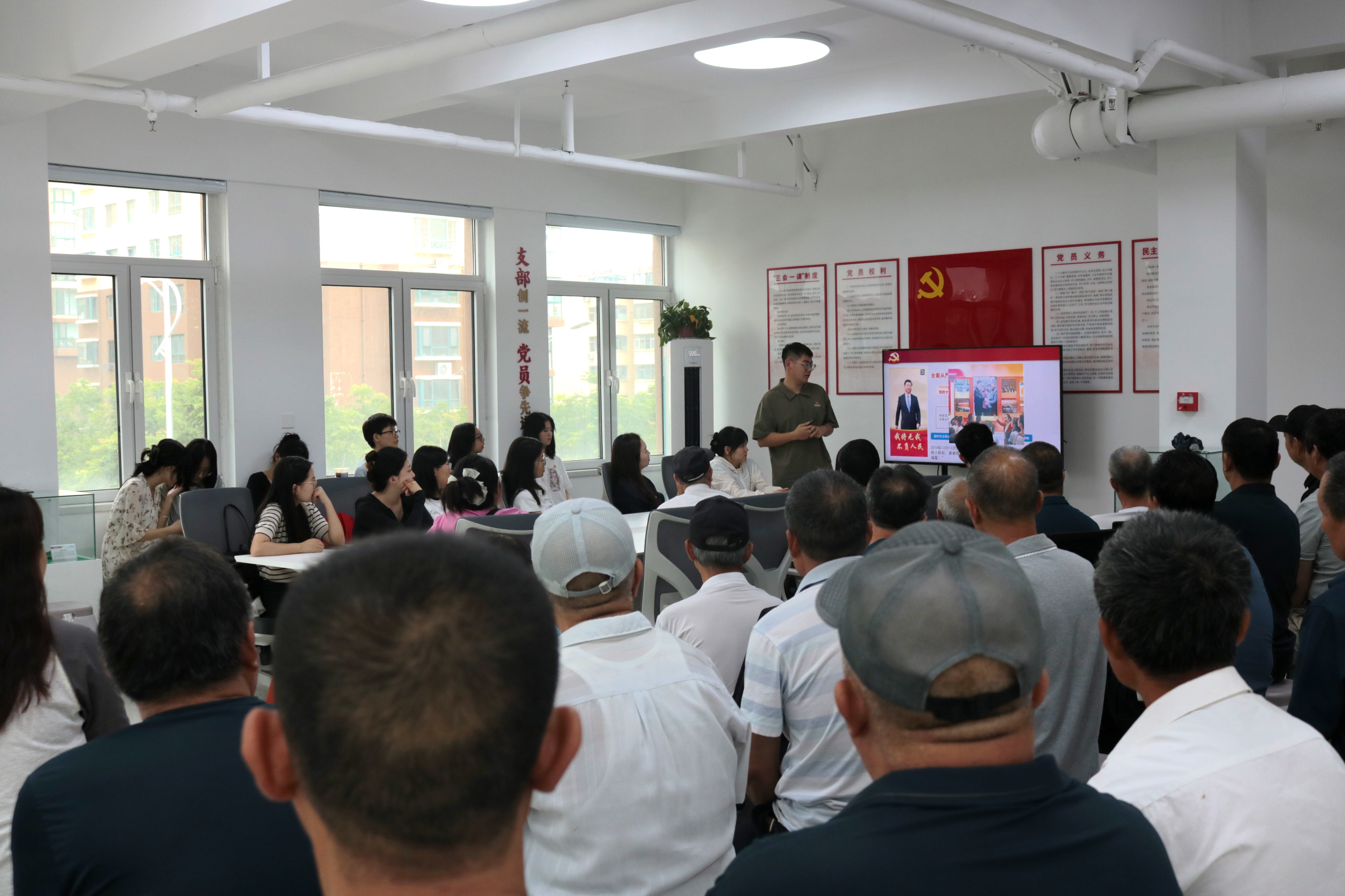 走訪結束后,全體人員一同來到社區(qū)黨群服務中心,參加海大馬院學生宣講團帶來的專題宣講——《薪火相傳弘揚延安精神,嚴明黨紀滋養(yǎng)政治靈魂》。宣講團通過回溯黨中央在延安十三年的光輝歷史,全面闡釋了延安精神的具體內(nèi)涵,并注重從傳承性和時代性的角度理解延安精神,將延安整風運動與正在開展的黨紀學習教育相融合,以優(yōu)秀黨史經(jīng)驗指導基層學習教育工作,推動黨紀學習教育走深走實。